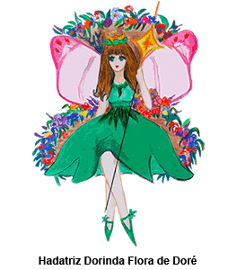 Por fin, Su Majestad salió de palacio. Blanca y Carmina iban tras ella con mucha pompa. Abandonaron por un momento a la hadatriz y dispusieron un pequeño trono cubierto de flores para que se aposentara como correspondía. Dorinda Flora tomó asiento. Nos dijo que podíamos aproximarnos. Así hicimos.